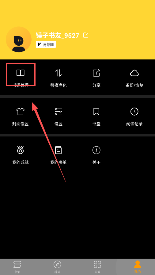 3、所有个人化操作都集中在“我的”区域,从管理书源、设置净化规则,到备份数据、查看成就和书单。