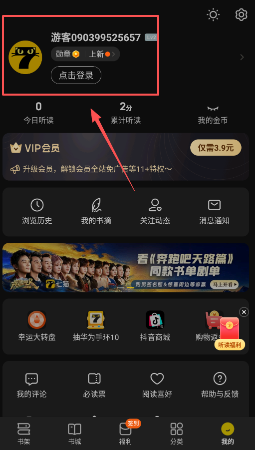 3、然后别忘了在“我的”页面进行个性化设置,你可以点击“点击登录”将阅读进度和收藏同步到云端。