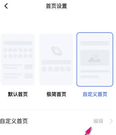 3、点击上方自定义首页。