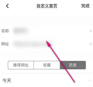 5、界面跳转,输入网页的名称以及对应的网址,点击右上角完成即可。