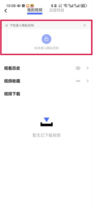 3、进入我的视频功能,下拉就可以进入隐藏空间,下拉即可进入。