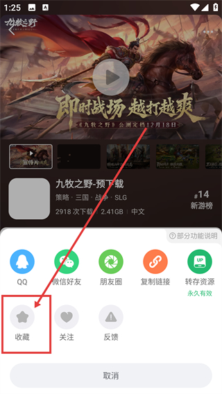 3、在弹出的功能菜单里点击【收藏】按钮,就能把这款游戏添加到我的收藏列表中啦。
