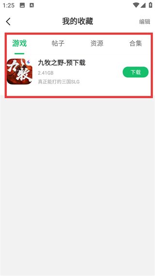 4、进入【我的收藏】页面,就能看到已收藏的游戏(如【九牧之野-预下载】),随时可以下载哦。