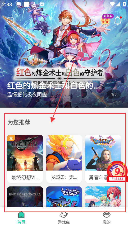 1、在软件首页,有【为您推荐】的游戏如【最终幻想VII】,点击它可进入游戏详情页,了解游戏信息啦。