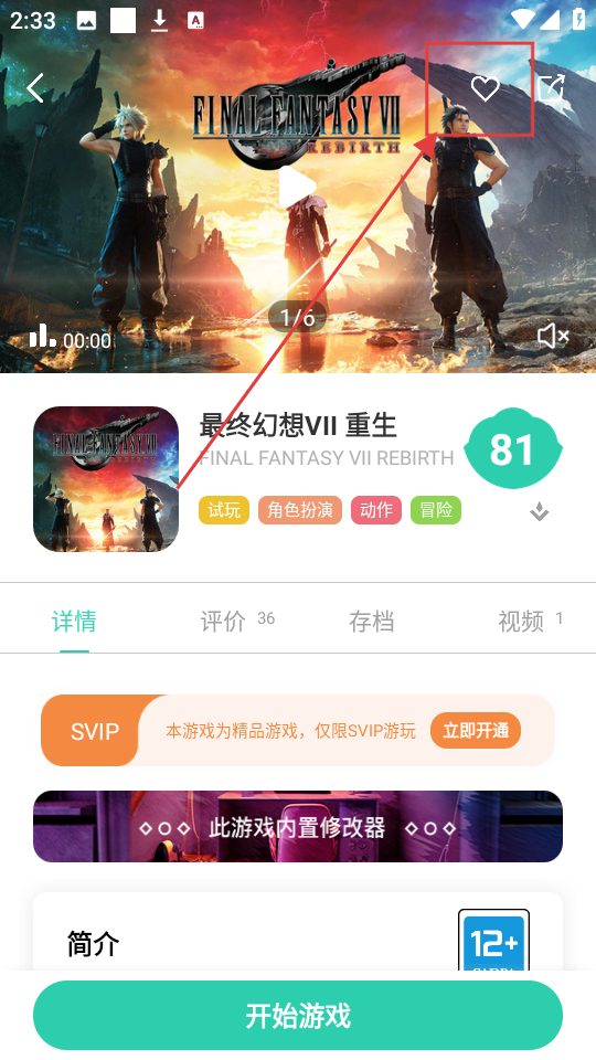 2、进入游戏详情页后,点击右上角心形按钮,可将该游戏加入收藏,方便后续查看哦。