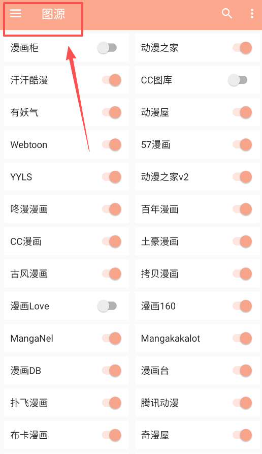 3、软件聚合了漫画柜、动漫之家等数十个图源,资源丰富,你可在列表中自由切换来源。