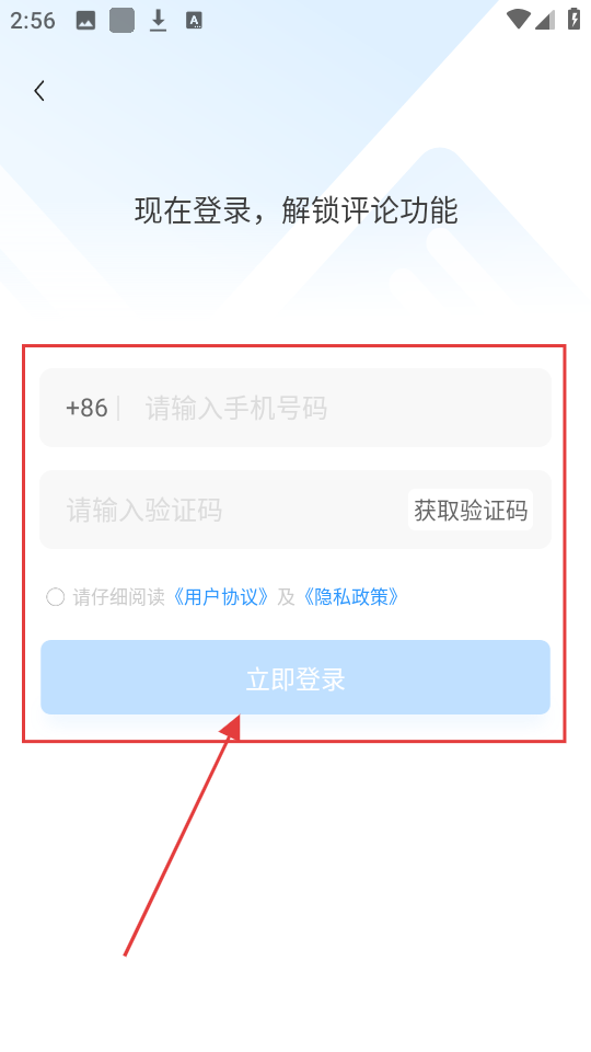 4、若未登录,会进入登录页面,输入手机号码和验证码,点击【立即登录】,可解锁评论功能啦。
