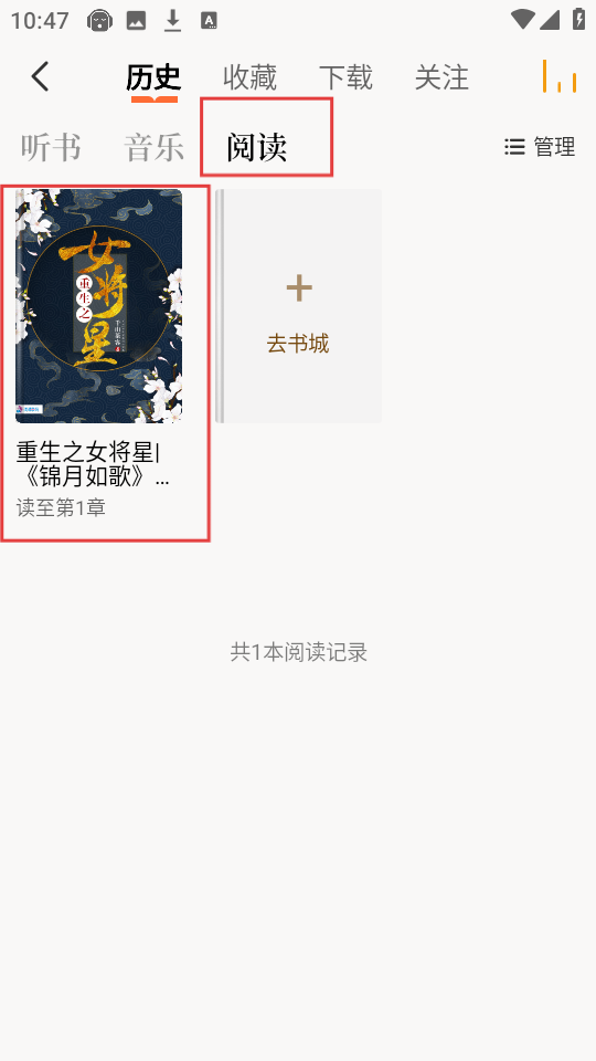 4、在历史页面,再切换到【阅读】板块,就能看到阅读类的历史记录,轻松找到之前阅读的书籍,继续阅读啦。