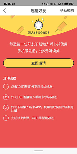 3、也可以选择邀请好友,每邀请一位好友就可以获得5元听读劵。
