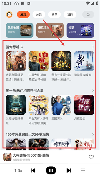 3、通过智能算法分析用户的偏好,的阅读记录和评分推荐适合用户的有声书籍,让用户能够发现更多感兴趣的内容。