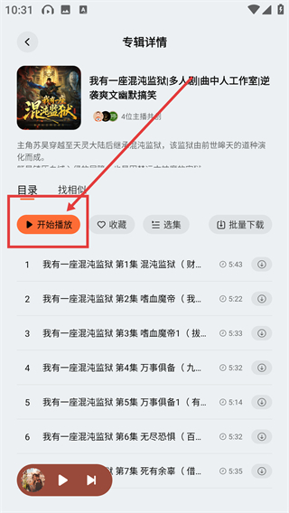 2、进入专辑详情页后点【开始播放】按钮,就能直接启动该音频的播放啦,很方便哦。