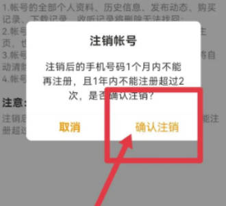 6.最后在跳出的询问窗口里会提示注销账号后一个月之内不能再次注册,且一年内只能注销2次,点击“确认注销”按钮即可。