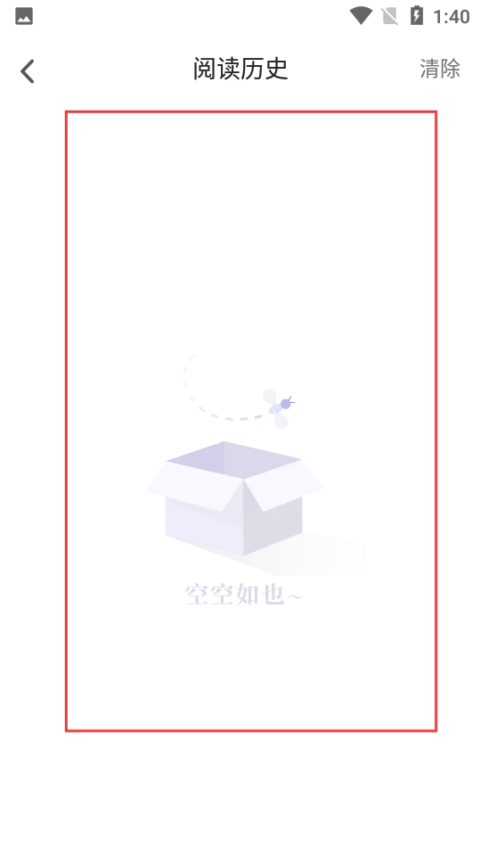 4、点击清除后,阅读历史页面就会显示空空如也,之前的阅读记录就都被清除啦。