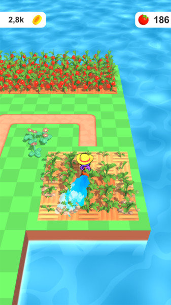 2、这款游戏内你要把种子种到地里后,你需要仔细照顾它们,每天给它们施肥和浇水。