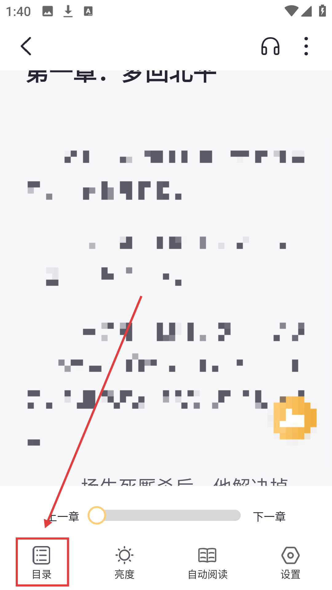 2、在阅读界面点击【目录】,展开小说章节列表,准备跳转章节啦。