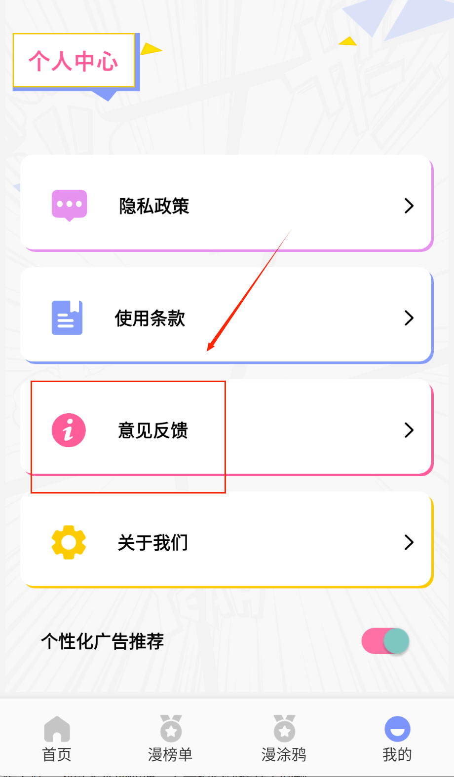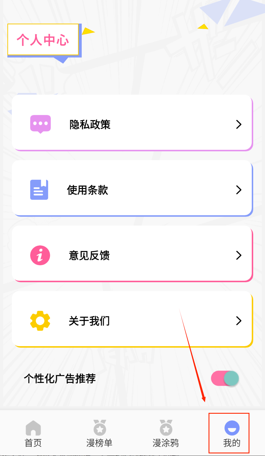 1.稀饭动漫APP打开,点击【我的】进入个人中心页面。