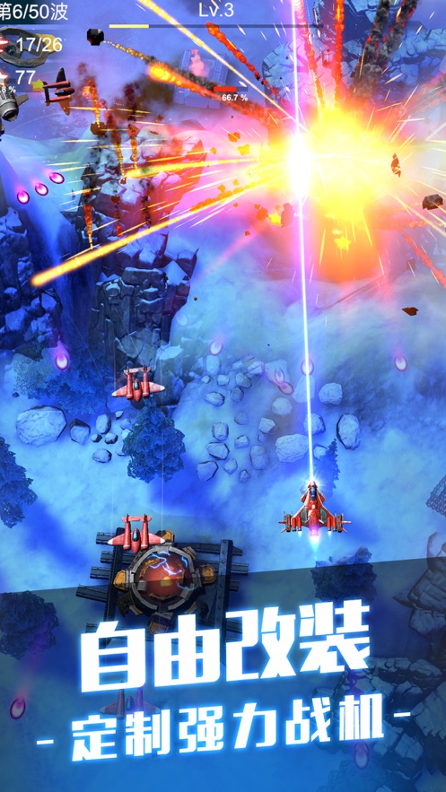 3、去不断升级你的飞机,是可以获得更多的战斗和更多狂热的游戏体验。
