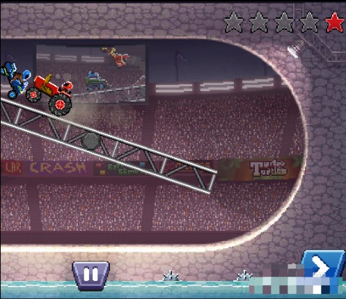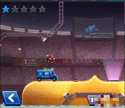 3、玩家必须收集更强大的汽车,然后去加速或跳跃,用赛车头盔撞击对手的汽车。