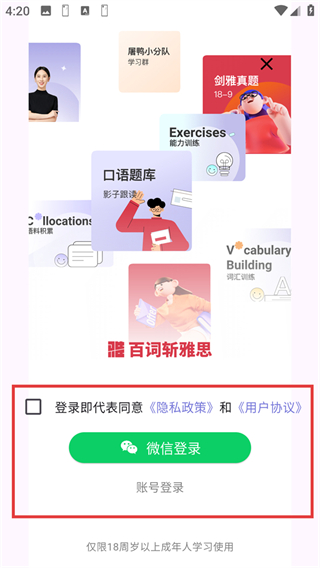 4、若需登录账号,勾选同意【隐私政策】和【用户协议】后,点击【微信登录】即可完成账号登录操作呀。
