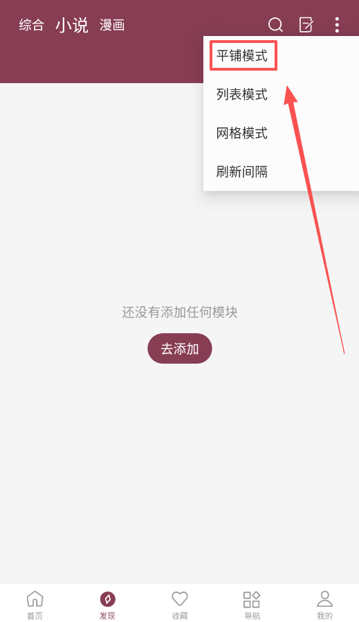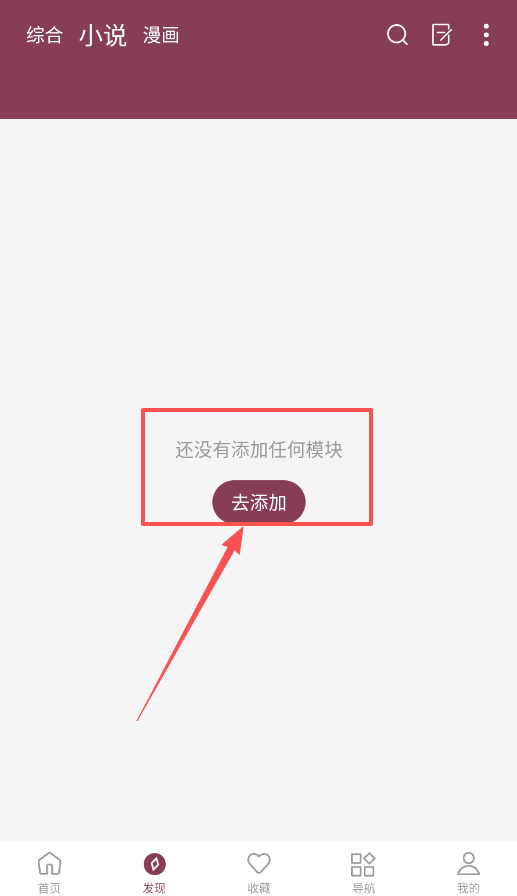1、初次使用,建议先在首页点击“去添加”模块,从小说、漫画等类别中勾选偏好内容。