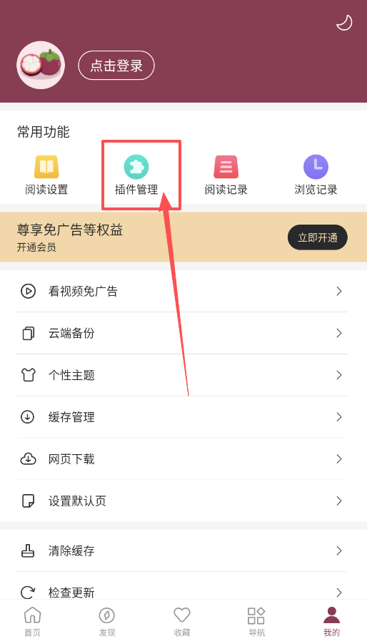 3、登录账号后,在“我的”页面可以管理阅读设置、插件及历史记录。