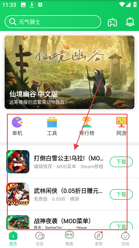 1、打开软件,可直接在首页点击喜欢的游戏;