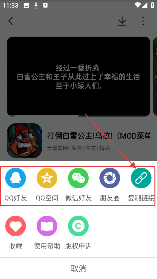 3、在分享选项菜单中,选择【复制链接】选项,即可复制游戏链接,方便分享给他人呢。