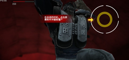 2、角色被冲撞后,会进入“QTE”微操时间,这是唯一自救机会,观察僵尸微动作,瞄准时机点击按钮,快速使用随身匕首进行反击。如果反击成功,再使用枪支进行近距离攻击即可,可万一反击失败,将损失半血,再度陷入冲撞者控制范围,重新进行反击判定。(攻击强高,血量高,防守不能出错)