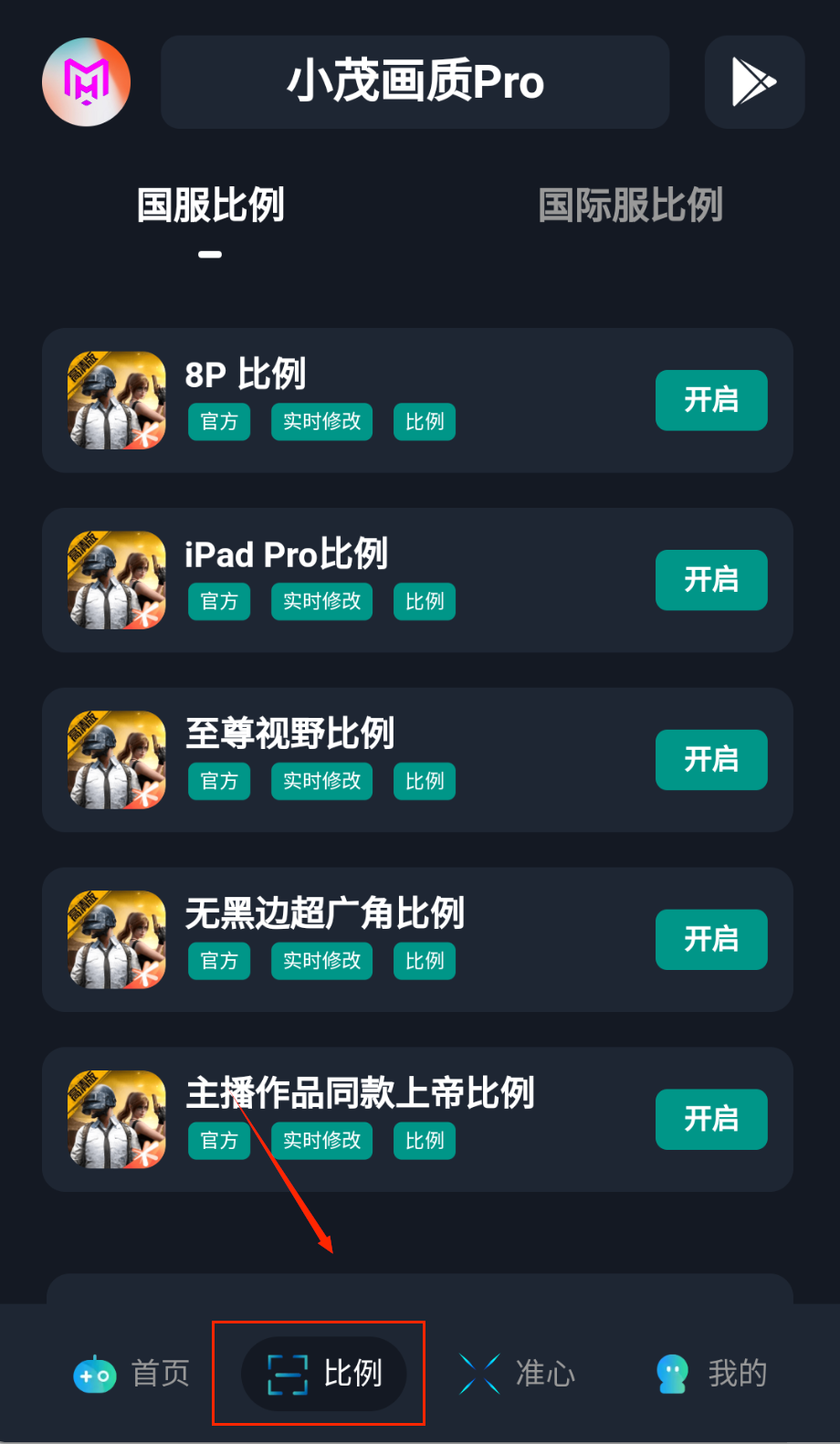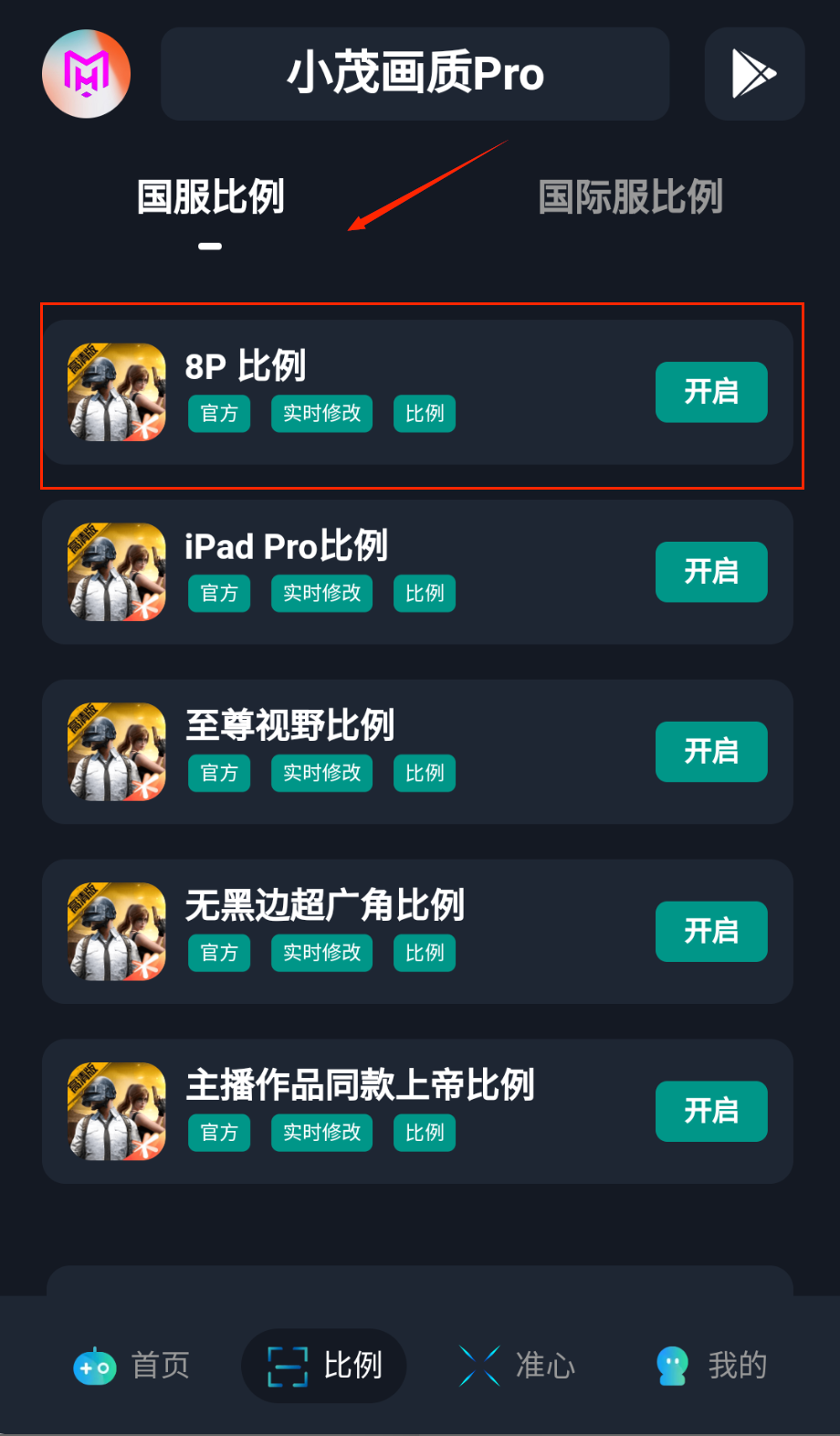 1、在比例页面可以看到国服比例和国际服比例分类,根据游戏版本选择对应设置避免不兼容。