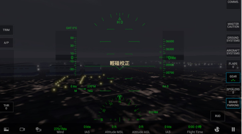 1,进入游戏中,点击“开始起飞”后,进入正式的飞行界面。首先会提示需要轻触校正,校正的目的是为了确认手机在什么角度是飞机平飞的角度状态。