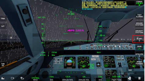 3,校正角度后,默认进入飞机机尾的视角,首先需要调整襟翼。按住右侧的FLAPS,选择第一级。