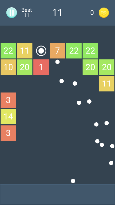 玩家要用里面的小球去不断的弹来弹去,将方块给消除。