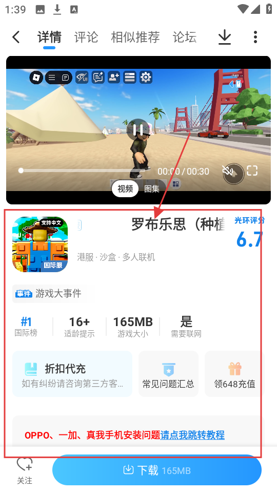 2、要是对《罗布乐思(种植花园)》感兴趣,点击进入它的详情页,就能看到游戏的评分、大小等信息,还能了解适配手机情况。
