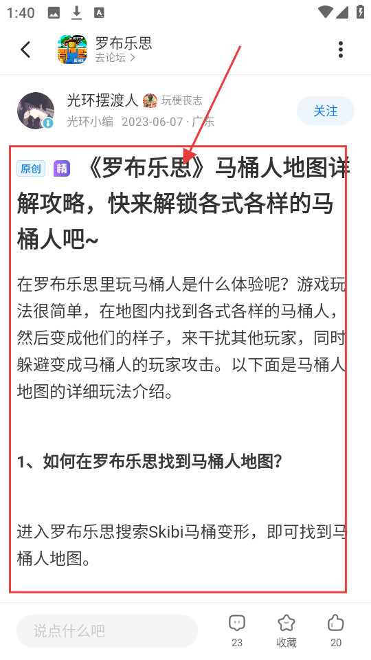 4、比如点击《罗布乐思》马桶人地图详解攻略,就能看到具体的玩法介绍,像怎么找到马桶人地图,让我们更好地玩游戏哦。
