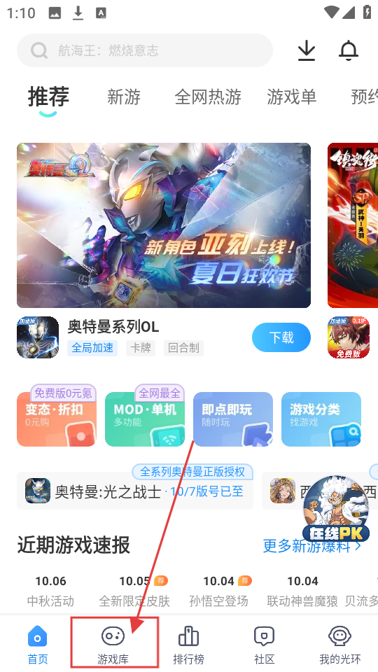 1、在平台首页,点击底部【游戏库】,就能进入游戏库页面,浏览各类游戏分类和推荐游戏啦。