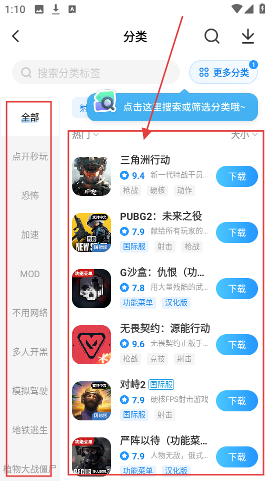 4、筛选完成后,页面会展示符合条件的游戏列表,选中心仪游戏,点击【下载】,就能开始下载游玩啦。