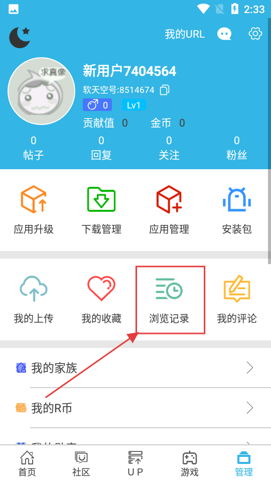 2、在个人管理界面点击【浏览记录】,就能进入浏览历史界面,查看浏览过的内容啦。