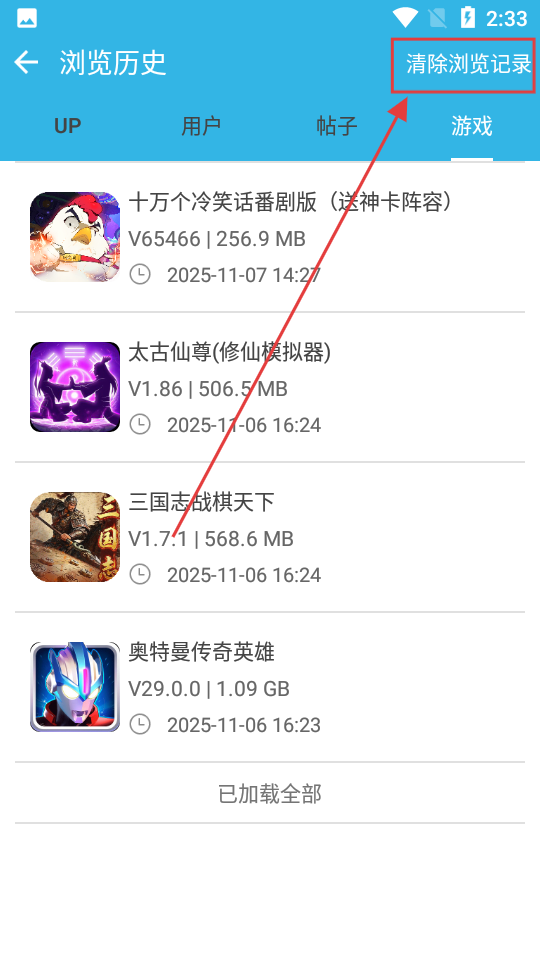 3、在浏览历史界面点击【清除浏览记录】,就能触发删除全部浏览记录的确认弹窗哦。