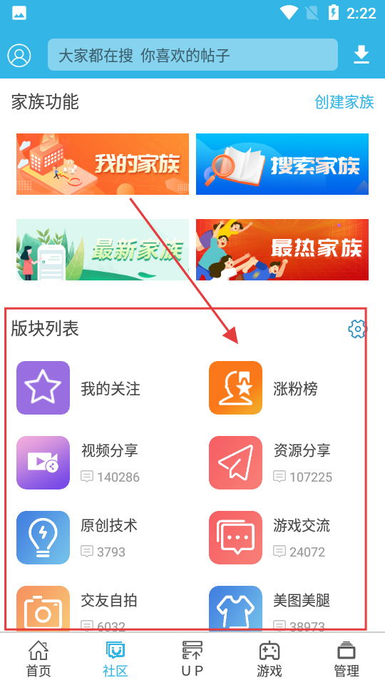 2、进入社区页面后,在版块列表里找到感兴趣的板块,比如【游戏交流】,点击就能进入相应板块哦。
