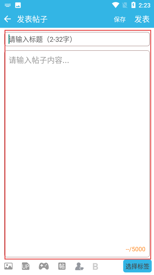 4、进入发表帖子页面,在【请输入标题】栏填写标题,在内容栏输入帖子内容,完成后就能发表啦。