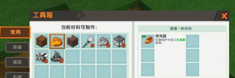 2.打开熔炉,将鸡腿放进去添加燃料,得到熟鸡腿。