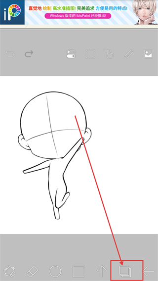 1、在ibisPaint绘画界面,点击底部的图层按钮,就能打开图层管理面板来调整图层啦。