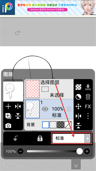 2、在图层面板里,选择目标图层后点击【标准】选项,就能打开图层混合模式的选择菜单哦。