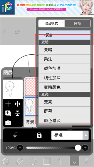 3、打开混合模式菜单后,可看到【变暗】【乘法】等多种模式,选择对应模式就能调整图层效果啦。