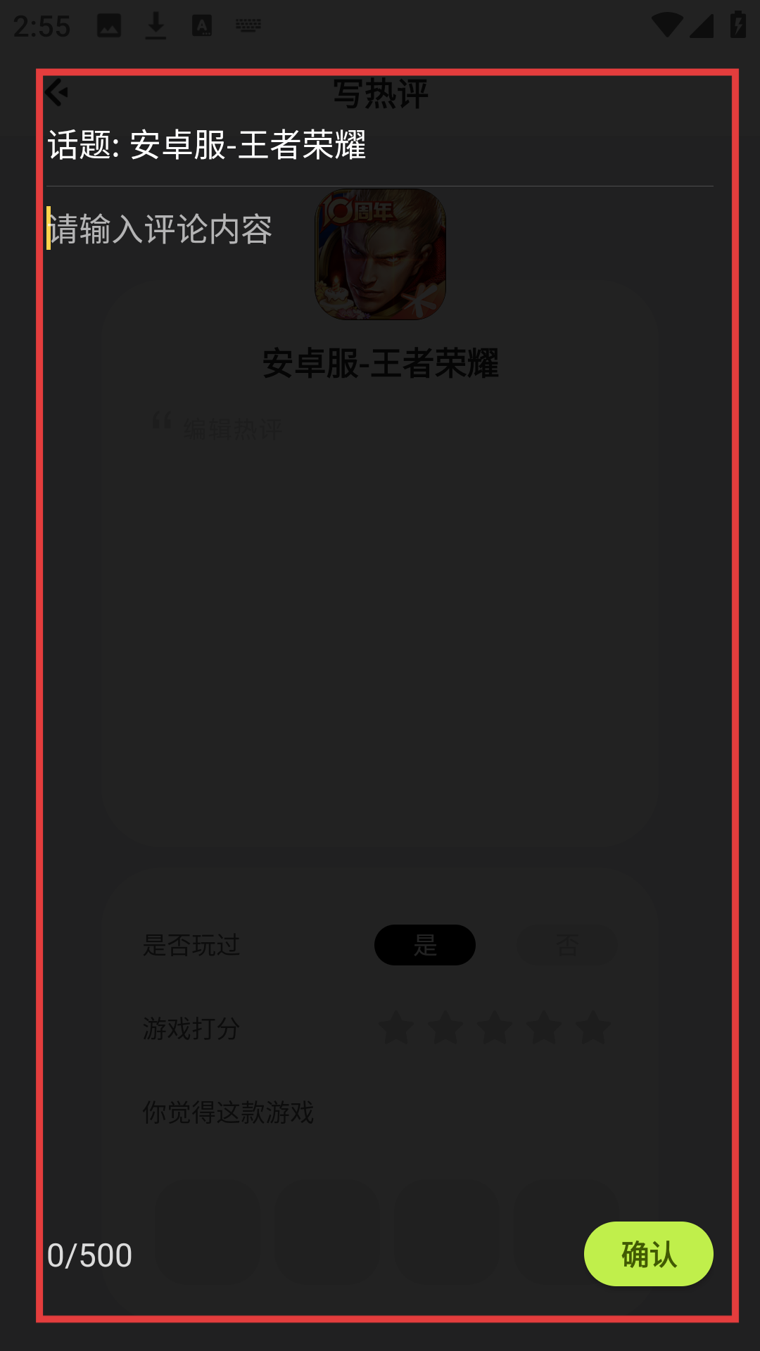 4、在评论编辑界面输入评论内容,完成后点击确认,即可发布热评,和大家互动啦。