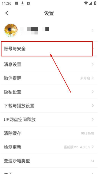 2、进入设置页面后,点击【账号与安全】,可进入账号与安全页面哦。