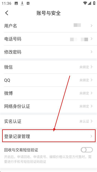 3、在账号与安全页面,点击【登录记录管理】,可进入登录记录页面啦。