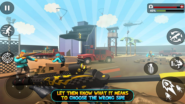 3、紧张刺激的战斗:小小枪战经典版游戏的战斗场面紧张刺激,玩家需要在敌人的火力压制下进行躲避和反击,灵活运用战术和技能,取得胜利。