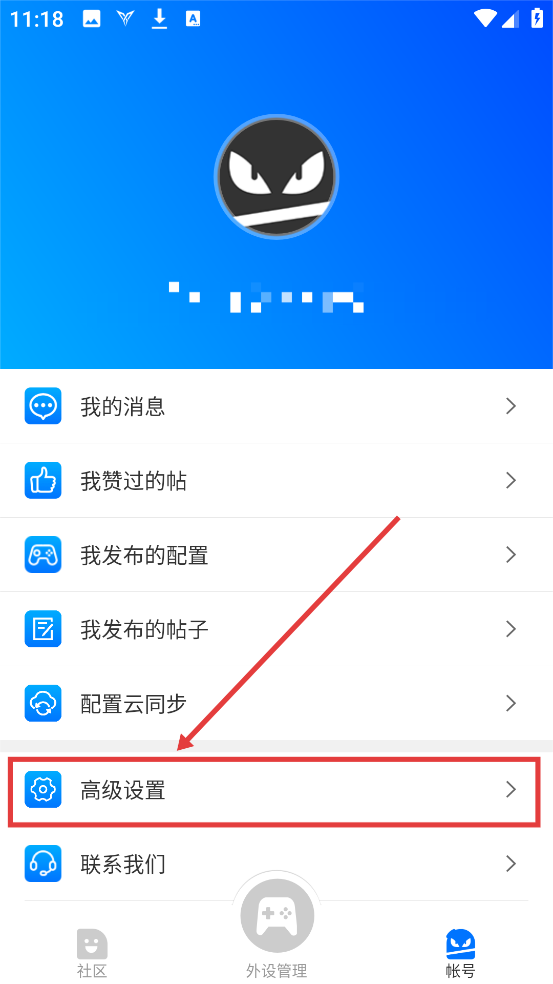 1、在社区页面,点击底部【帐号】,可进入帐号页面,准备进行高级设置操作啦。