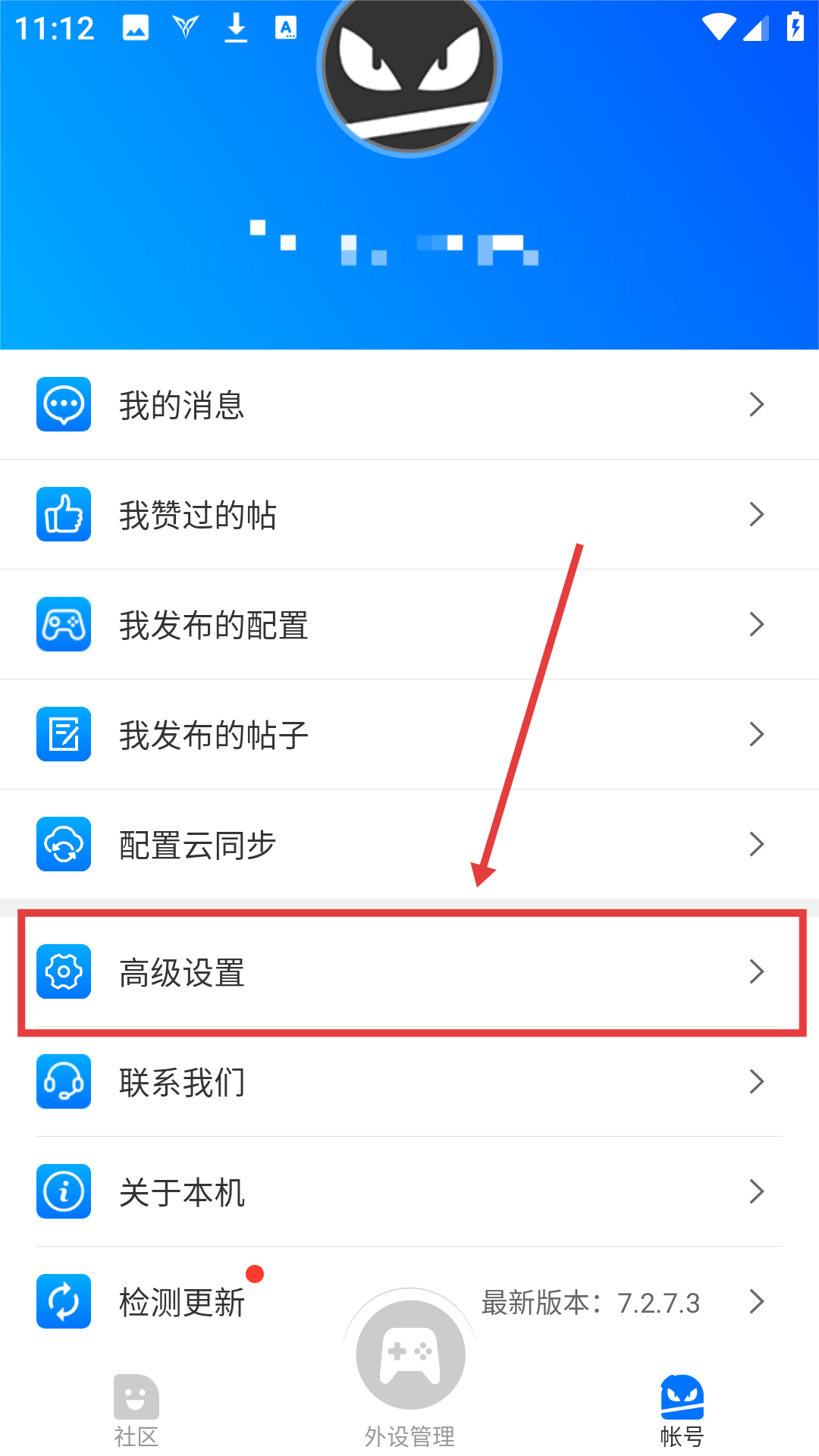 2、在个人界面点击【高级设置】,进入高级设置界面,准备调整高级功能啦。
